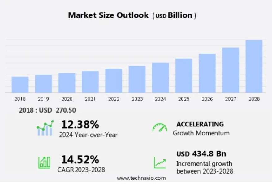 Data Center Market은 2023년 부터 2028년 USD 434. 8 billon 으로 CAGR 14.52% 예상