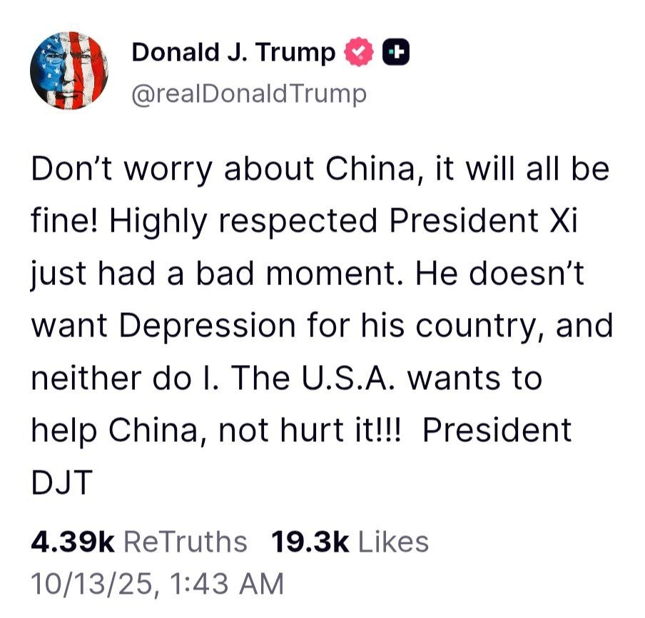 트럼프, 중국의 수출 통제 편지에 분노. APEC 시진핑 만남 취소 고려.