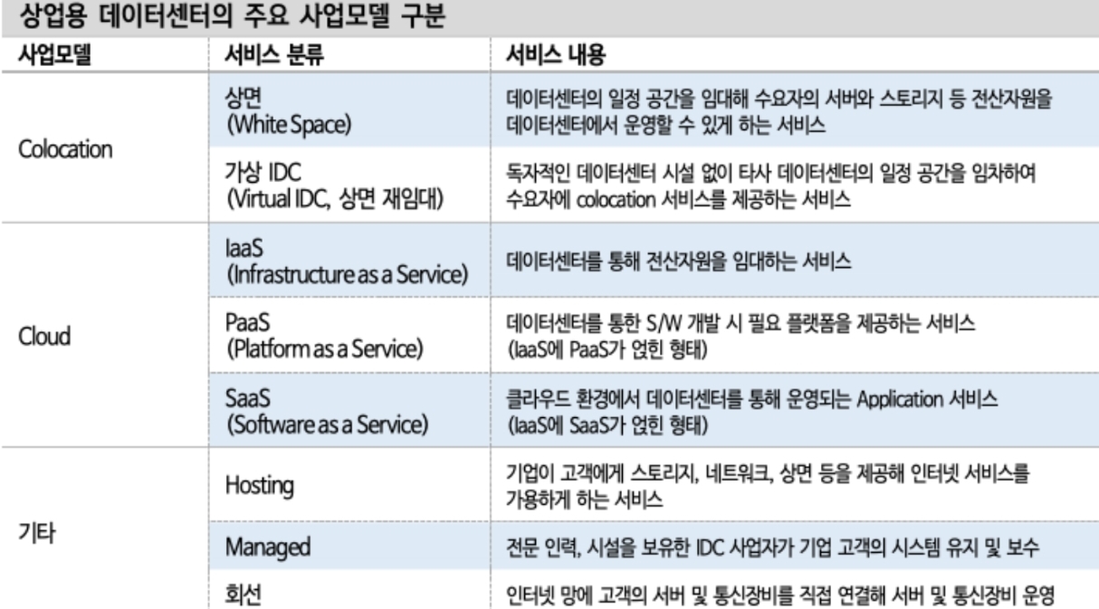 코로케이션 데이터 센터(Colocation Data Center): 데이터 센터 운영자가 시설을 관리하고 여러 기업이 동일한 시설에서 서버와 장비를 호스팅하는 형태로 운영됩니다. 월세의 개념 정도로 이해하시면 됩니다.