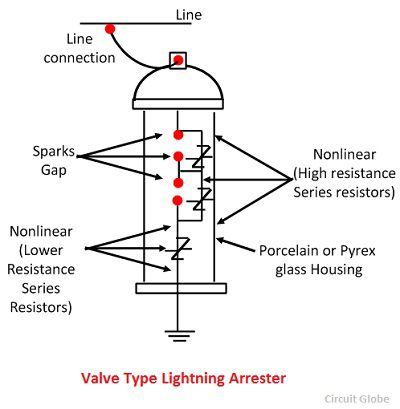8) Valve Type Lightning Arresters: 전압이 특정 수준에 도달하면 내부 밸브가 열려 방전이 발생하는 원리 입니다.
